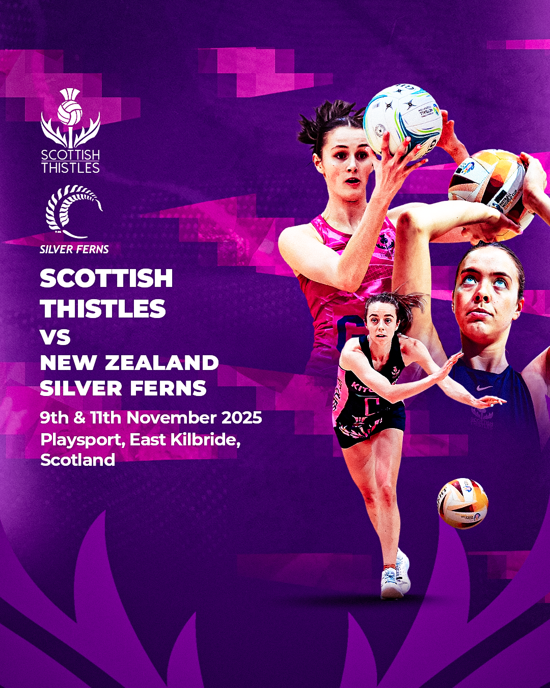 In Summer '25 I was tasked by Netball Scotland to create a series of pieces going away from their normal style to help boost the profile of the Scottish Thistles ahead of their upcoming games.